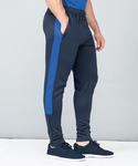 Slim leg knitted track pants with contrast colour side panels. Zipped side pockets. Elasticated waist with internal drawcord. Ankle zips with zip guard and semi-automatic lock zip sliders.