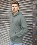 Twin needle stitching detailing. Double fabric hood with self coloured cords. Kangaroo pouch pocket. Ribbed cuffs and hem. Also available in kids'